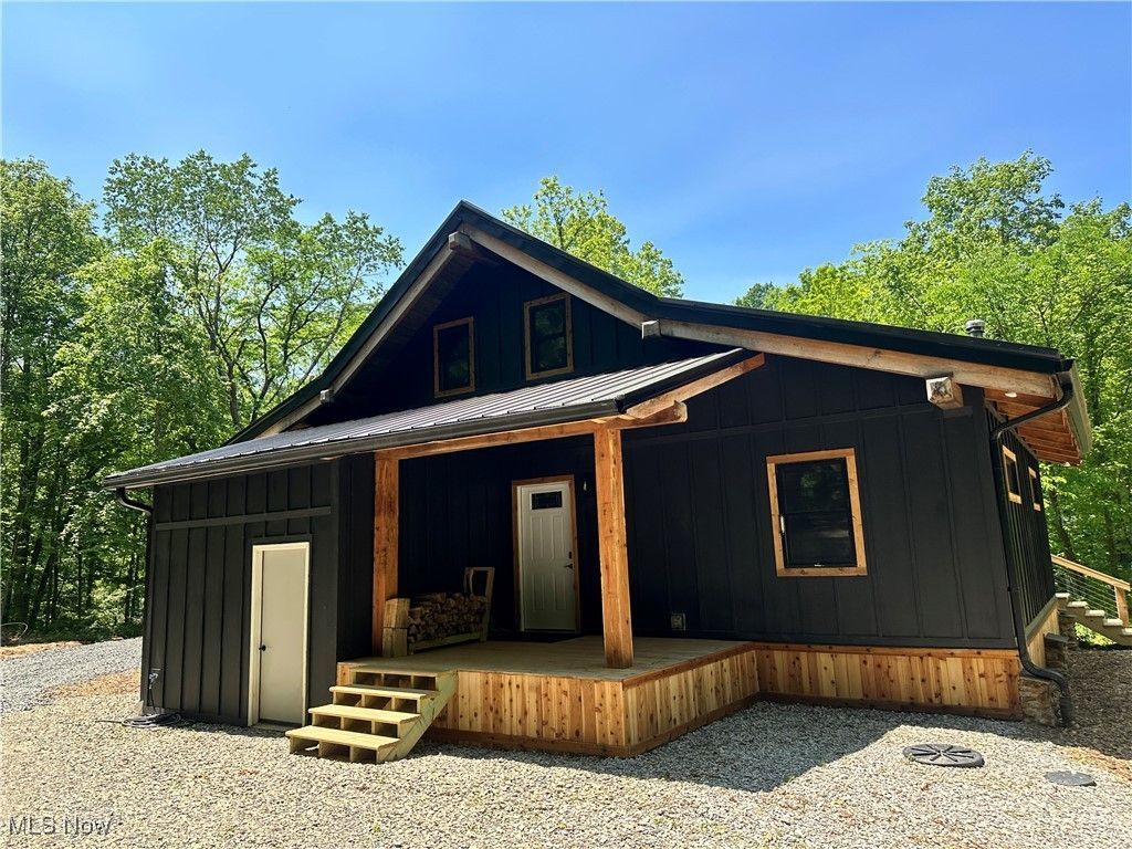 Escape to your own secluded 45.947-acre paradise, designed for the true outdoor enthusiast. Nestled deep in nature, this recreational retreat features a brand-new off-grid, solar-powered A-frame cabin that comfortably sleeps 10-12. Crafted with 8x8 timber framing from red oaks harvested on-site, and finished with hickory floors and pin oak trim, the cabin blends luxury with sustainability along with an abundance of finer touches. Energy-efficient mini-split HVAC system installed to provide year-round heating and cooling comfort, ideal for off-grid or remote living. Mounted securely on the exterior, this unit offers quiet, reliable climate control with low energy consumption, not to mention a beautiful wood burner for those that want a crackling fire. Powered by 16 solar panels (450W each), 2 EG4 batteries, and a Luxpower 12kW inverter, this off-grid system ensures comfort in the wild. Wildlife abounds?deer, turkey, bobcat, squirrel, wood duck, grouse, barred owl, and more. Relax on the front deck overlooking a serene pond with a bedrock bottom. Retaining wall was made from on-site stone. A second wall features hand-laid foundation stones from a historic Mansfield schoolhouse. Approx. 1 mile of trails and a small food plot offer year-round adventure. Whether you hunt, hike, atv ride or simply enjoy nature, this rare, private getaway is where peace meets precision. The driveway ascends with a tasteful incline, offering beautiful views and a grand entrance to the home that enhances the property's secluded feel.