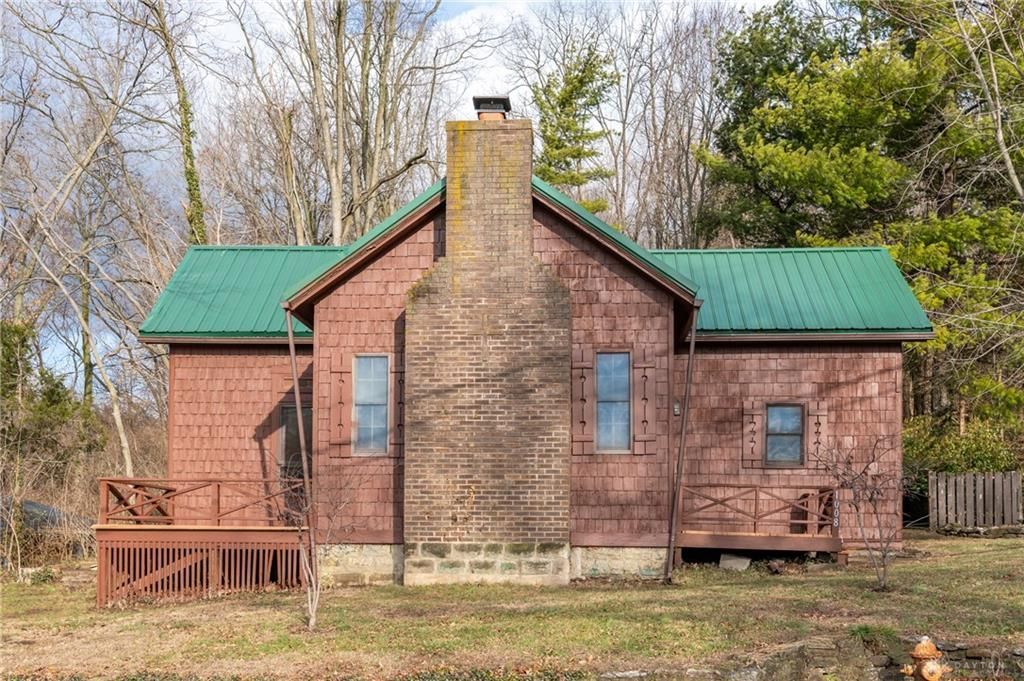 Welcome home to this updated 3-bedroom, 1-bath ranch nestled on over an acre, surrounded by mature woods, and just minutes from downtown Germantown. Step inside to a bright living room featuring tall ceilings, wood burning fireplace, and brand-new carpet creating an open and inviting atmosphere. The large kitchen provides ample space for cooking and gathering, highlighted by freshly painted cabinets and plenty of storage. The updated bathroom adds a modern touch, while three comfortable bedrooms and an office complete the functional layout. Step outside to your covered porch and enjoy your wooded views. Property also includes a large detached garage. New HVAC system will be installed on 1/26/26. Garage will be painted to match the freshly painted home. Don't miss this rare opportunity!