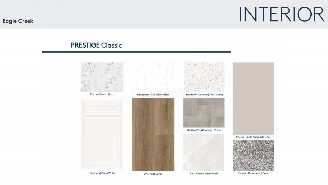 ESTIMATED COMPLETION BY THE END OF JUNE. This is a wonderful new 4 bed 2.5 bath home in Eagle Creek. The kitchen has stainless gas KitchenAid appliances, dana white purestyle cabinets with prestige hardware, lyra quartz counters, ice gloss tile backsplash, a large island with space for seating, an upgraded steelstone gray composite single bowl sink with a sleek moen faucet and a walk in corner pantry. The primary suite has a private bath with a double bowl vanity, blanco maple quartz counter, a linen closet, a walk-in contessa dama matte white tile shower and a large walk-in closet. An add'l 3 beds, a full bath with a double bowl vanity, a loft and laundry. An eating space, great room, 2 flex living spaces, a powder room and an extended 2 car garage. Full Front Porch. Luxury Vinyl Tile Throughout First Floor. Smart home features included. Brushed nickel finishes. Painted iron ore rail and wrought iron spindles. Convenient access to everyday necessities like grocery, retail, dining, banking, and more. Park with tot lot, pergolas and an open activity lawn along with a walking path throughout the community for your enjoyment. Interior photos are of a model, not the actual home.