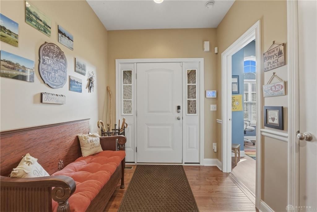 Welcome to Stonehill Village, where low-maintenance living meets exceptional space and style in the heart of Beavercreek Schools. This beautifully maintained 4-bedroom, 3 full bath ranch offers the convenience of main-level living paired with a fully finished walk-out basement designed for flexibility and entertaining. From the moment you arrive, the brick façade, clean landscaping, and 2-car attached garage set the tone for the quality found throughout. Inside, the open layout seamlessly connects the kitchen, dining area, and living room—creating an ideal setting for everyday living and hosting. Vaulted ceilings in the living room enhance the sense of space and natural light, while expansive windows frame serene views of the surrounding green space. The kitchen features rich cabinetry, granite countertops, stainless steel appliances, and a breakfast bar that provides additional seating and gathering space. Just off the living room, the stunning Florida room is surrounded by windows and offering peaceful panoramic views. Whether used as a morning coffee retreat or a year-round sitting area, it adds both charm and versatility to the home. The spacious primary suite includes a private en suite bath complete with a soaking tub, separate stand-up shower, and a walk-in closet. Two additional bedrooms and a full bath round out the main level. Downstairs, the walk-out basement expands your living options significantly. A sizable family/rec room offers endless possibilities—media space, game room, fitness area, or multi-generational living. The wet bar makes entertaining effortless, while the fourth bedroom and full bath provide a perfect guest suite or private retreat. Step outside to the covered patio and enjoy the peaceful backyard setting. The HOA includes clubhouse access, fitness center, pool, tennis courts, walking trails, playground, and mowing—allowing you to spend more time enjoying your home and less time maintaining it. Schedule your private tour today!