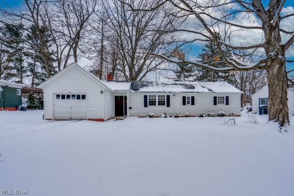 Enjoy the convenience of first floor living on one of the most coveted streets in the Village! A prime location within a prime location, this easy breezy ranch abuts Hudson Middle School's campus and is just yards away from community playgrounds, award-winning schools, and Lavelli track & field! Here you get the benefits of being within the exciting Downtown district with a quiet neighborhood setting to retreat to. Black and white with charm all over, this home is set upon a very nice lot with a maturely treed backdrop for quaint curb appeal! Inside, you'll be struck by bright windows and a spacious layout. The family room offers a big beautiful picture window to bring the outdoors in! A crackling fireplace adds warmth on those chilly nights while build-ins provide space for both storage and display! The ultra-functional flow gives way to the sunny dining area, and the delightful kitchen is around the corner. Beautiful honey-toned Kraft Maid cabinets, updated appliances, and plenty of counterspace characterize this cook's delight, and the warm, uniform wood grain floors guide you through the entire layout! 3 bedrooms and 2 full baths give room for everyone! The smart breezeway from the attached garage gives opportunity for additional gathering space in the form of a sun room with an exterior door to the rear patio. No basement equals no worries and brings the laundry to the first floor making it true one-floor living...what could be easier than that?! Extensive mechanical updates have been made in recent years (ask us for the full list!) and all has been lovingly maintained. Imagine Summers spent on the Green, nights out at First and Main, and an amazing selection of artisanal wines and cheeses from Heinen's just a sidewalk away! 179 Elm Street is exactly what you've been waiting for!