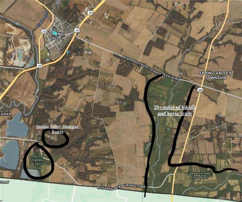 Great size 1.31 AC! And a great location for a new home build with no restrictions other than local municipalities. You are free to bring your own builder or sub it out yourself. One of the highest peaks in the valley overlooking beautiful night lights. The current owners have done a lot of prep work by clearing out many dead and splitting trees, had gravel layer for parking and are on schedule for having a good mow for better walking around the property. Now is a great time to move into Spring Valley with its country feel, historical backstory and with the support of a small town/community that is in the process of refreshed growth. Be sure to check out the local businesses such as Slims (neighborhood watering hole and family restaurant), the local ice cream shop, multiple small stores downtown and of course the well known Road Dog station famous for their carry out food. The well known Ohio to Erie Trail (Columbus-Cincinnati) bike path runs right through town, if kayaking is your thing, there are multiple places to put in and out plus the Spring Valley Shooting range is just across St Rt 42 along with the Caesar Creek boat ramp and acres of public land for horses, hiking and hunting. Again, this is a little, easy care, piece of paradise just waiting for someone put up a roof and call it home.
