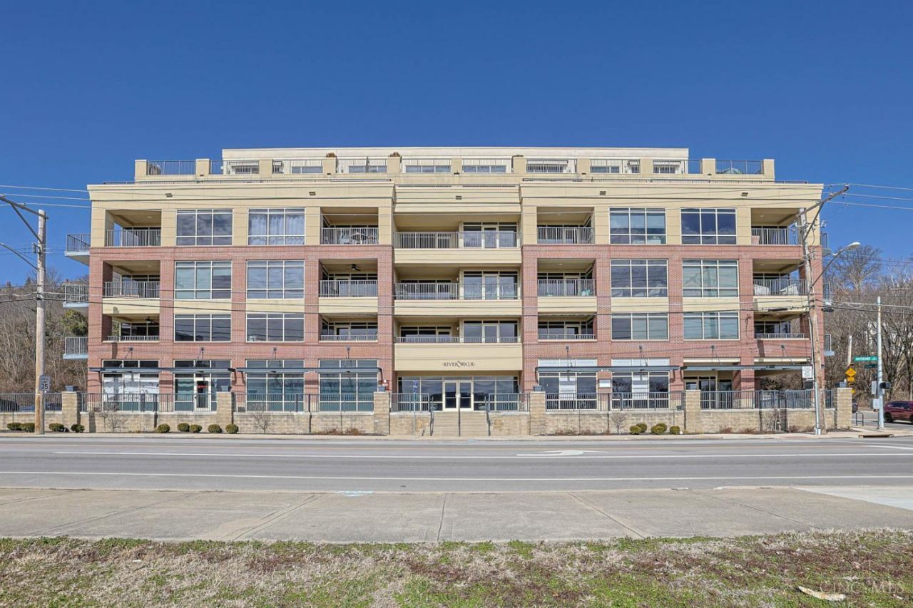 Enjoy Ohio River views from this gorgeous end-unit in the sought-after Riverwalk building in Cincinnati's vibrant East End. Open floorplan with tall ceilings and large picture windows providing abundant natural light. Kitchen features stainless steel appliances and flows into the main living area. Recent updates include new carpet and fresh paint throughout. No neighboring units, offering added privacy. Located directly across from the LeBlond park and Riverwalk bike path with easy access to downtown, walking trails, dining, and entertainment. Move-in ready!