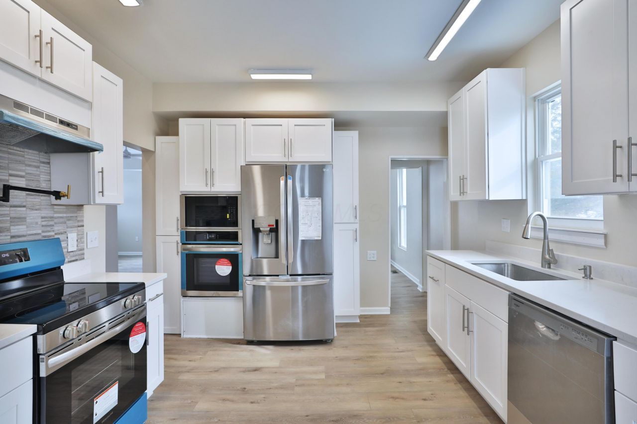 Welcome to this stunning turn-of -the century farmhouse style home beautifully reimagined with today's fine finishes while preserving its timeless charm. Step inside from the inviting new front porch into a light filled open and airy living room & dining room space. Living room features a decorative fireplace with new porcelain tile hearth. A new convenient half bath with white fixtures has been added. The dining room features open, light filled space with new chandelier. New LVP flooring.First floor primary suite is king sized with two separate closets. New soft neutral carpeting. Luxurious spacious private bath with double sink vanity, over the sink wall mounted lighting, shower with marbelized walls and glass doors, and separate white tub.Complete kitchen re-design featuring 42' white custom cabinetry and pantries with soft close features & brushed nickel hardware. Gorgeous white quartz counter tops. Deep kitchen sink with window for natural light. Stainless steel appliances include 5burner range with pot filler faucet w/ range hood, double wall ovens, dishwasher, French door refrigerator with water and ice dispenser. First floor laundry with washer and dryer custom built-in shelving.Step out from the kitchen onto the new custom designed 320 sq.ft tri-level deck with solar lighting, new landcaping. Second floor features fabulous bonus room or second floor family room. Two bedrooms. Second floor luxurious full bath with delightful window overlooking back lot. All NEW mechanicals include HVAC, septic system hot water tank, breaker boxes in house and garage with new wiring, new plumbing, new windows, new paint inside and out, new landscaping. New gravel driveway and garage door. Garage features additional space for workshop or possibly potential living space.Nothing to do but move in and enjoy the quiet surroundings with convenient access to Columbus, Plain City, Marysville.