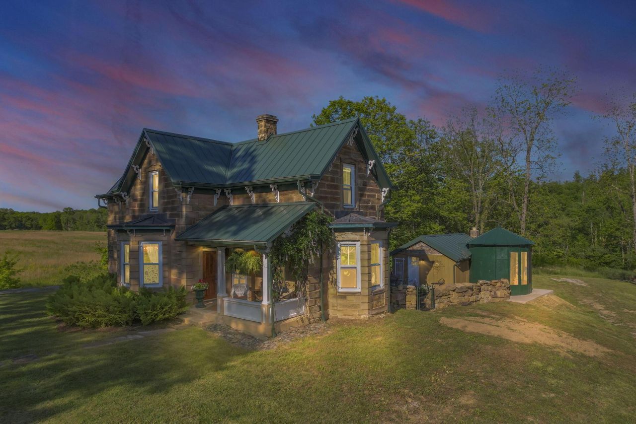 The perfect oasis awaits! This stunning, newly rebuilt 1882 farmhouse that spans over 12.5 acres has been meticulously restored with no detail left overlooked. This retreat has it ALL - fully furnished and featuring 2 bedrooms, 2.5 bathrooms, sprawling two-story ceilings in the kitchen, beautiful stone and wood work, a detached garage, cottage garden leading to an extra living room, potting shed, historic 1885 octagonal barn perfect to restore for weddings or events, a peaceful pond with a brand new dock plus a tiny second unit that is just awaiting your final touches, and gently rolling terrain that would be perfect to add more units - what more could you want? The potential here is endless - this could make a fantastic short-term rental, a perfect wedding, event, or even music/concert venue, or just the perfect getaway for you and your loved ones to enjoy for years to come. Conveniently located a short drive off of State Route 93 and just minutes to all of the best attractions in the Hocking Hills region, this retreat is truly a must-see. Surrounded by nothing but serenity, the history and charm of this property's story is sure to warm your heart and you can just feel the positivity the moment you set foot on the ground. Welcome to your new getaway!
