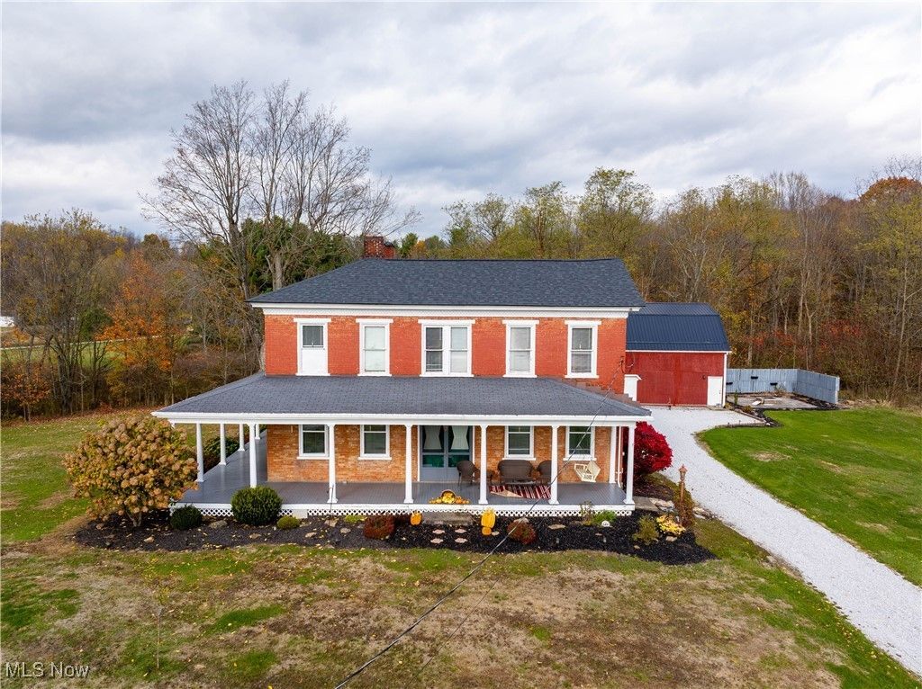 Step into a rare blend of historic charm and modern comfort in this beautifully maintained 204-year-old all-brick Colonial complete with wrap around cover porch, set on 8.13 acres of wooded land. With timeless craftsmanship throughout and thoughtful updates in all the right places, this is a property you'll recognize as the one you've always admired from the road. A newly updated kitchen features white cabinetry, a classic tiled backsplash, and modern conveniences while preserving the home's authentic character. The spacious dining room showcases original hardwood floors, a stunning fireplace with its original mantel, and a warm, inviting atmosphere perfect for gatherings. The parlor embodies early-American charm with wainscoting, wood floors, a second fireplace, and beautifully preserved woodwork. The large living room offers a third fireplace with a wood-burning insert, custom built-ins, and even a hidden passage leading to the upstairs?an unforgettable detail that highlights the home's history. In total, the home features four fireplaces, adding warmth, architectural appeal, and historic character throughout. Upstairs you'll find the 4 bedrooms and bathroom thats been tastefully updated with a walk-in tiled shower, double vanity, and new flooring. Every improvement blends seamlessly with the original character. Outside, the 30x40 garage with 200-amp service provides excellent workshop or storage space. The expansive acreage offers peace and privacy, complete with a thoughtfully designed fire pit area?perfect for relaxing evenings, gathering with friends, or enjoying the wooded surroundings. Lovingly owned and meticulously maintained for over 37 years, this remarkable property is ideal for someone who appreciates the beauty and permanence of a true historic home. Conveniently located near Minerva and Hanoverton, opportunities like this are exceptionally rare?don't miss your chance to own a piece of local history.