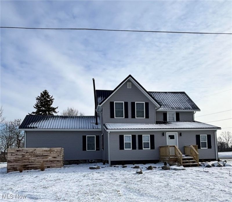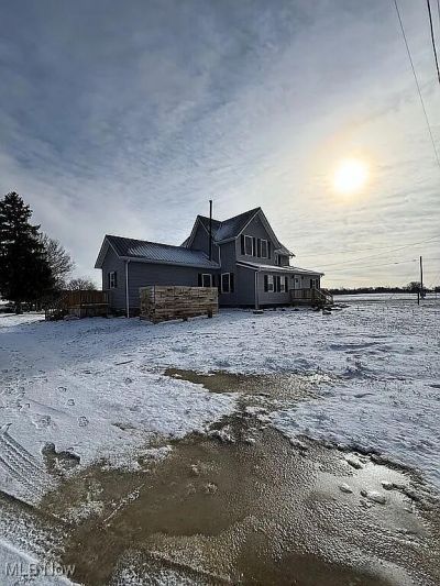 Modern farmhouse Country living on 3 acres. Stunning TOTAL renovation of this FOUR 4 bedroom two full bath farmhouse originally built in 1890. High-end total makeover includes solid surface marble countertops, custom tile showers, brand new plumbing, electrical, furnace, windows, roof, siding. Everything brand new and ready for move-in. First floor master bedroom/bath. Set on 3 acres in the country with creeks and walking trails. Large three car detached garage with mechanics pit and wood-burning stove for year-round use. Buckeye Central school District. Country living close to town.