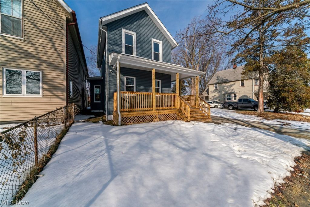 Don't miss this beautifully renovated 4-bedroom home by the Cuyahoga Land Bank! Thoughtfully updated from top to bottom, this home features a new roof and gutters, updated electrical, brand-new HVAC, new windows, a new driveway, a new two-car garage, and stylish modern fixtures and finishes throughout. Step onto the inviting covered front porch and into a spacious foyer and living room. The living area flows seamlessly into the dining room, with convenient access to the second floor, and into the fully updated kitchen featuring new cabinetry, granite countertops, and stainless steel appliances. The first floor offers exceptional flexibility with an easily accessible bedroom, convenient first-floor laundry, and a half bath?ideal for one-floor living. Upstairs, you'll find three additional bedrooms and a full bathroom, providing plenty of space for family, guests, or a home office. Outside, enjoy a spacious yard, a brand-new concrete driveway, and a new two-car garage. A one-year America's Preferred Home Warranty is included for added peace of mind. Schedule your showing today!
