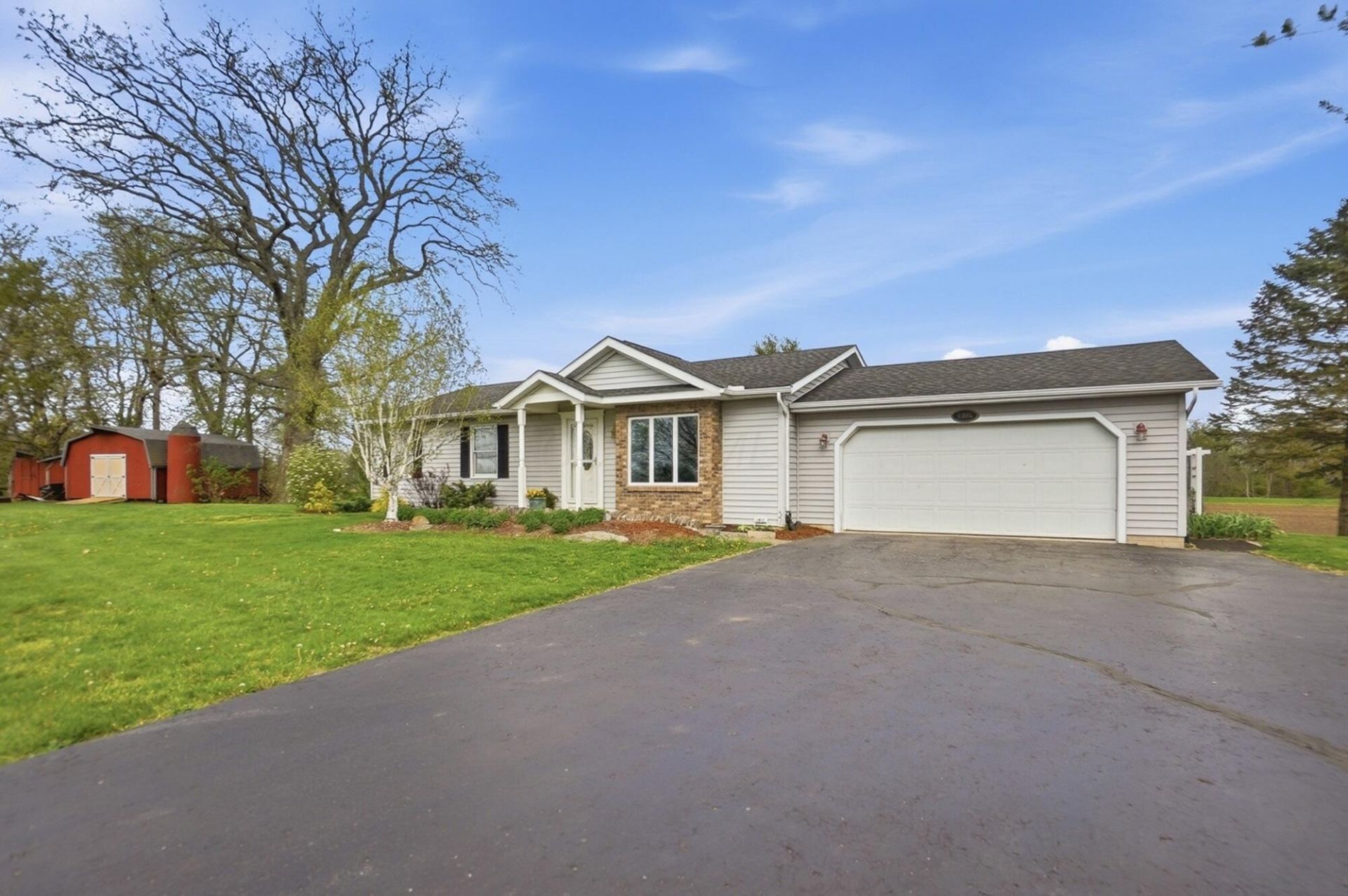 Pride of ownership shines throughout this beautifully maintained 3-bedroom, 3-bath ranch home on 1 acre. Nestled in a peaceful setting backing to an open field and Big Darby Creek, this property offers both privacy and scenic views. The updated kitchen features white cabinetry, Corian countertops, a breakfast bar, and a dining area. Unwind in the rear three-season room overlooking the stunning landscaping and serene countryside. The main level includes two bedrooms and two full baths, along with a spacious laundry room complete with cabinetry. The generous (22 x 13) owner's suite offers a walk-in closet and a well-appointed private bath.The finished walk-out lower level provides additional living space with a rec room, family room, third bedroom(with egress window), and 3rd full bath. Completing the property are a 2-car attached garage and two large storage sheds offering ample space for all your needs.