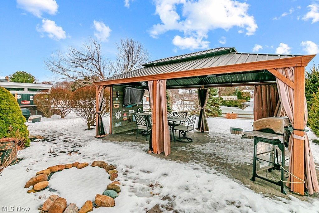 Welcome to Whalers Cove one of Mentor's most sought-after neighborhoods where location, space, and lifestyle come together beautifully. This impressive four-bedroom home offers the perfect blend of comfort, function, and timeless appeal. Step inside to an inviting layout featuring a spacious family room anchored by a stunning stone gas fireplace, ideal for cozy evenings or relaxed gatherings. The eat-in kitchen is both stylish and practical, showcasing Corian countertops, stainless steel appliances, and ample cabinet space, with easy flow to the formal dining room perfect for hosting holidays and special occasions. Downstairs, you'll find a huge finished lower level offering a recreation room/media space, playroom and/or extra bedroom providing flexibility for today's lifestyles. First-floor laundry adds everyday convenience (washer/dryer stay). Step outside and prepare to fall in love. The fenced-in backyard is a true private retreat ideal for children and pets featuring gorgeous professional landscaping, a serene pond view, and an oversized charming gazebo with a durable metal roof. Whether you're entertaining, relaxing with morning coffee, or enjoying peaceful evenings, this backyard truly feels like a personal paradise. All new windows 2015, roof & gutter 2012. Located close to schools, shopping, dining, parks, and commuter routes, this home offers both tranquility and convenience. Homes in Whalers Cove don't come along often this is a rare opportunity to own a move-in-ready home with space, beauty, and an exceptional outdoor setting.
